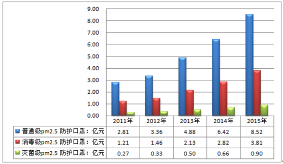 2011-2015年中国PM2.5 防护口罩市场细分领域