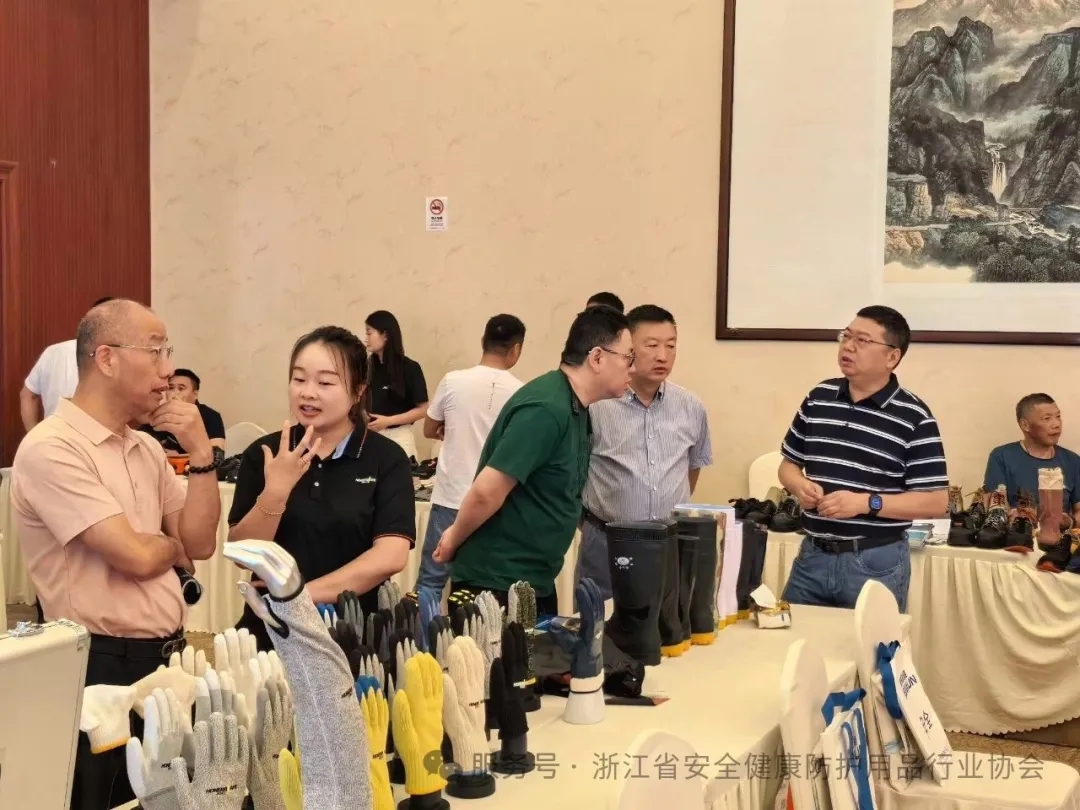 建德市朝美日化有限公司、旭美控股集团有限公司、上海纳美鞋业有限公司、太仓市启华针织品有限公司、浙江坤昱科技有限公司、乐清市华东安全防护器材科有限公司、杭州瑞霖劳保用品有限公司、泰克曼(南京)安全防护设备有限公司、金湖县金阳塑胶有限公司、湖州齐飞安全防护用品有限公司、浙江中麦安防科技有限公司、山东星宇手套手套有限公司、江苏省派登鞋业有限公司等企业在会议期间进行了产品展示交流。