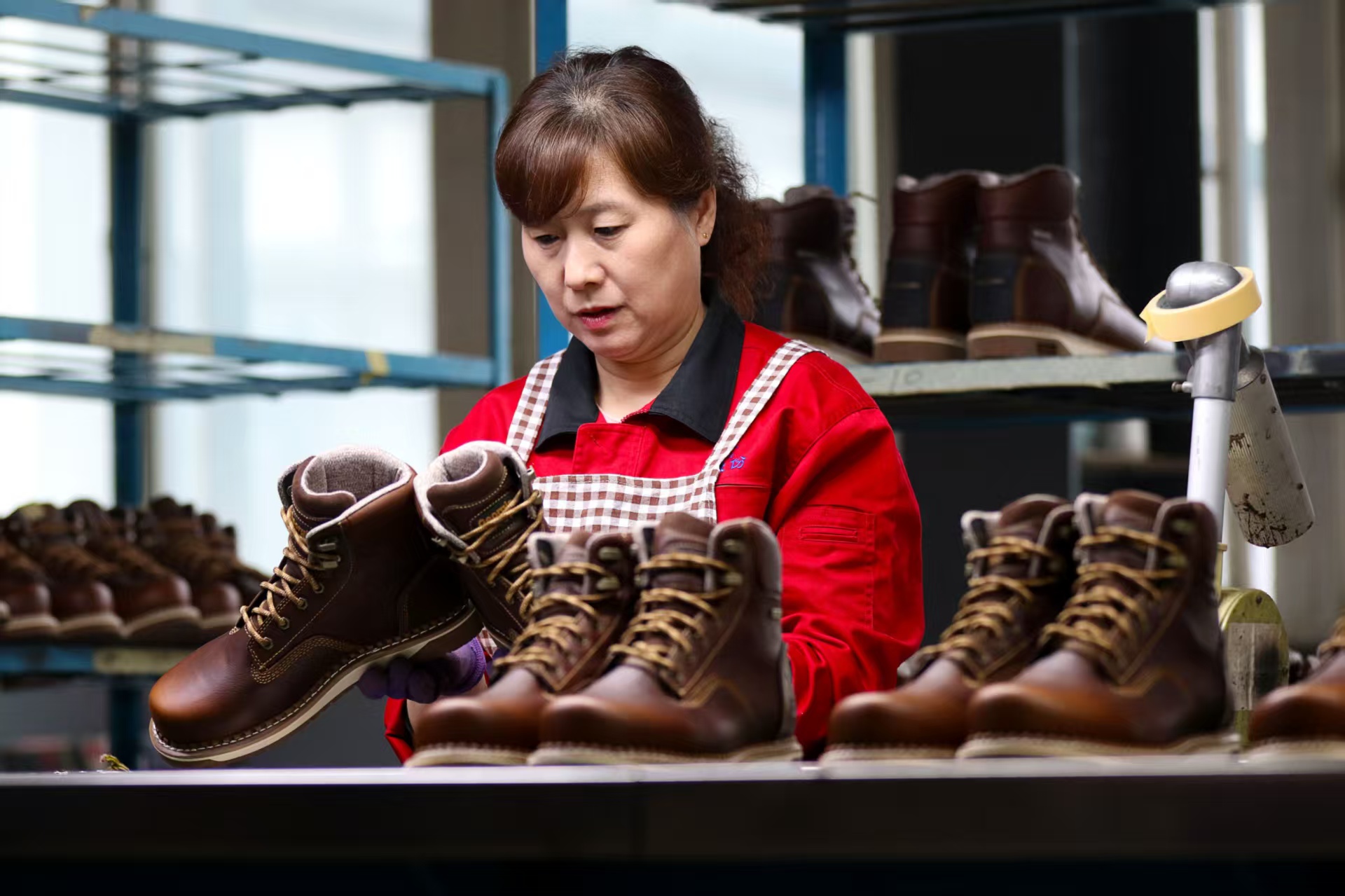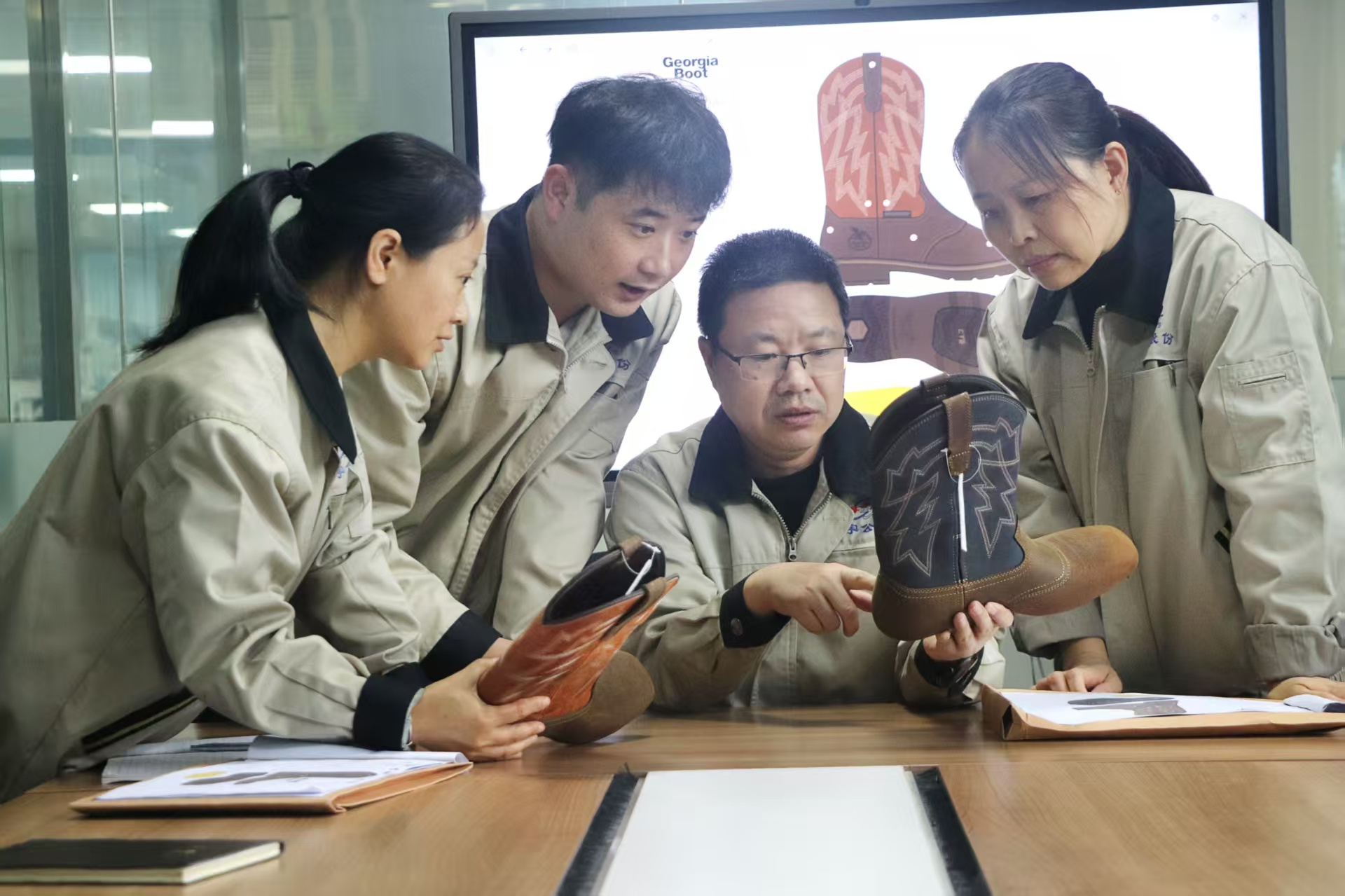 海宇股份的智能化生产车间展现了其先进的生产技术。自动化生产线高速运转,机械臂精准操作,工人们在数字化控制台前认真监控生产数据。海宇的客户名单上,既有中石油等国内重点单位,也有美国沃尔玛、Rocky Brands等国际巨头。从借船出海到自主出海,海宇已初步构建起“国内国际双循环”的渠道格局。